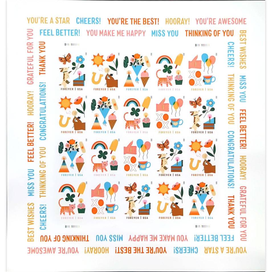 Send greetings to friends and family with a new forever stamp. Not only great for postcards, letters, mailing envelopes or collecting, but for collectibles, birthdays, teachers, occasions, weddings, parties, showers, celebrations and more.