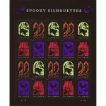 Today, America’s prejudice against black cats is not nearly as severe as it was for the Pilgrims, though the spooky feeling these felines give us still lingers. ?This has led many people to avoid black cats, especially around Halloween. ?Considering this history, it is only fitting that the black cat was pictured on one of the United States’ 2019 Spooky Silhouettes Stamps.